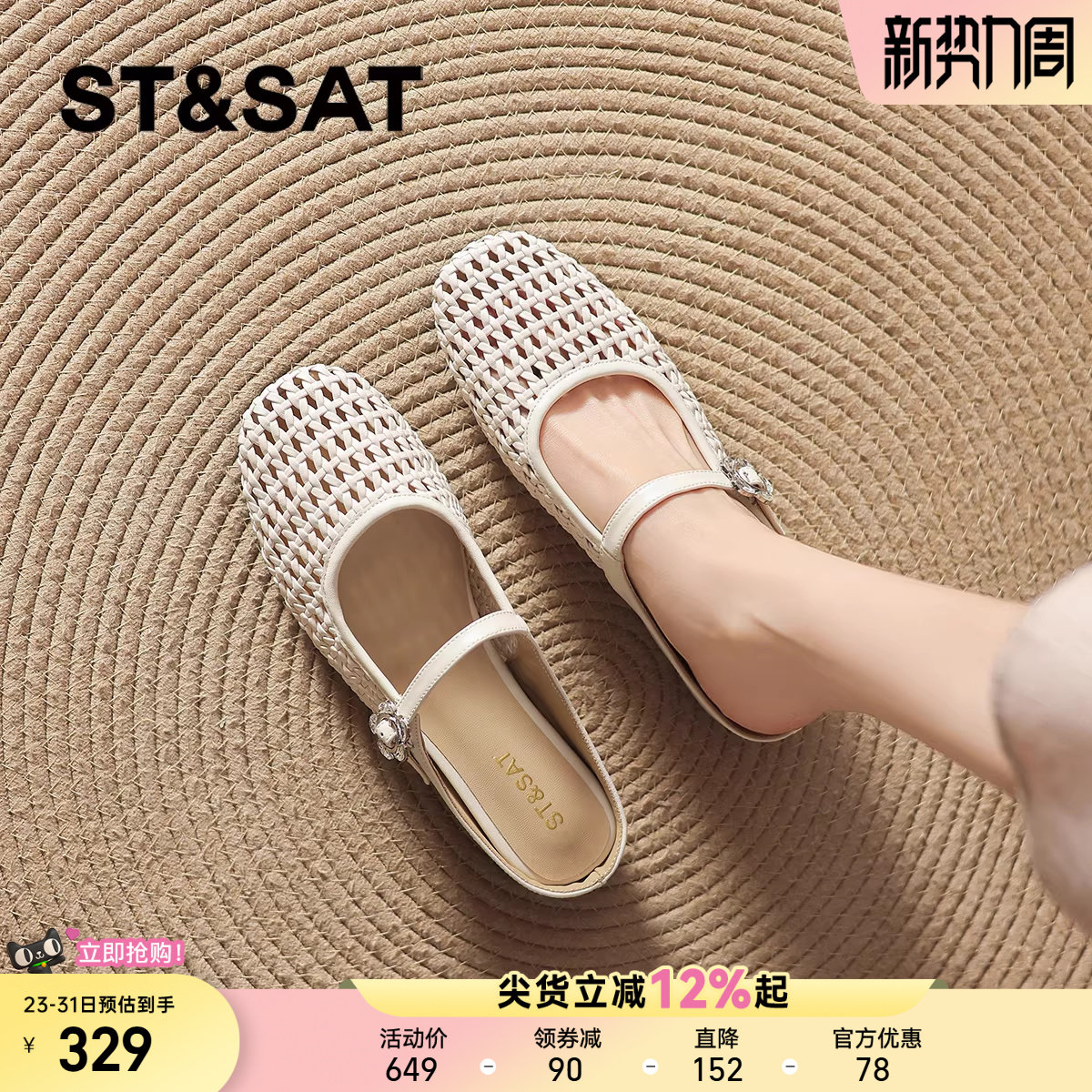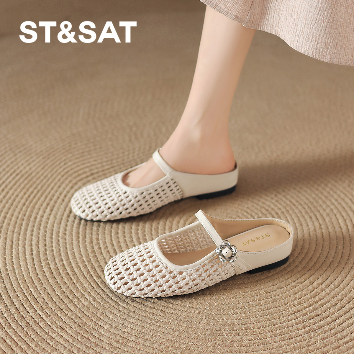 星期六包头拖鞋女春夏季2026新款外穿镂空编织玛丽珍女鞋平底凉鞋