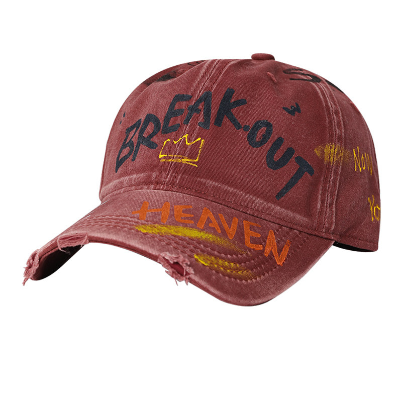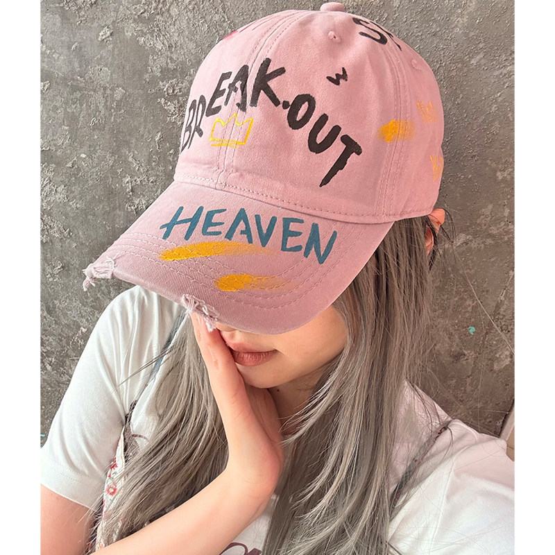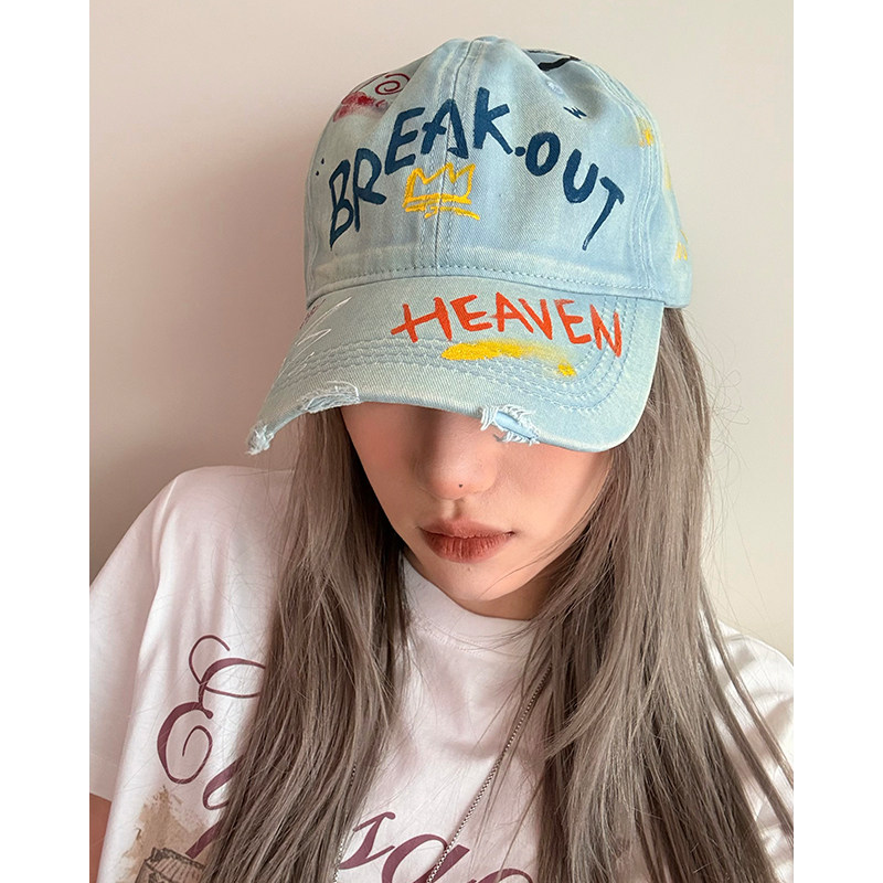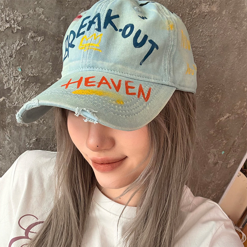 妖精的口袋字母涂鸦印花复古牛仔帽子2026年春夏新款棒球帽鸭舌帽