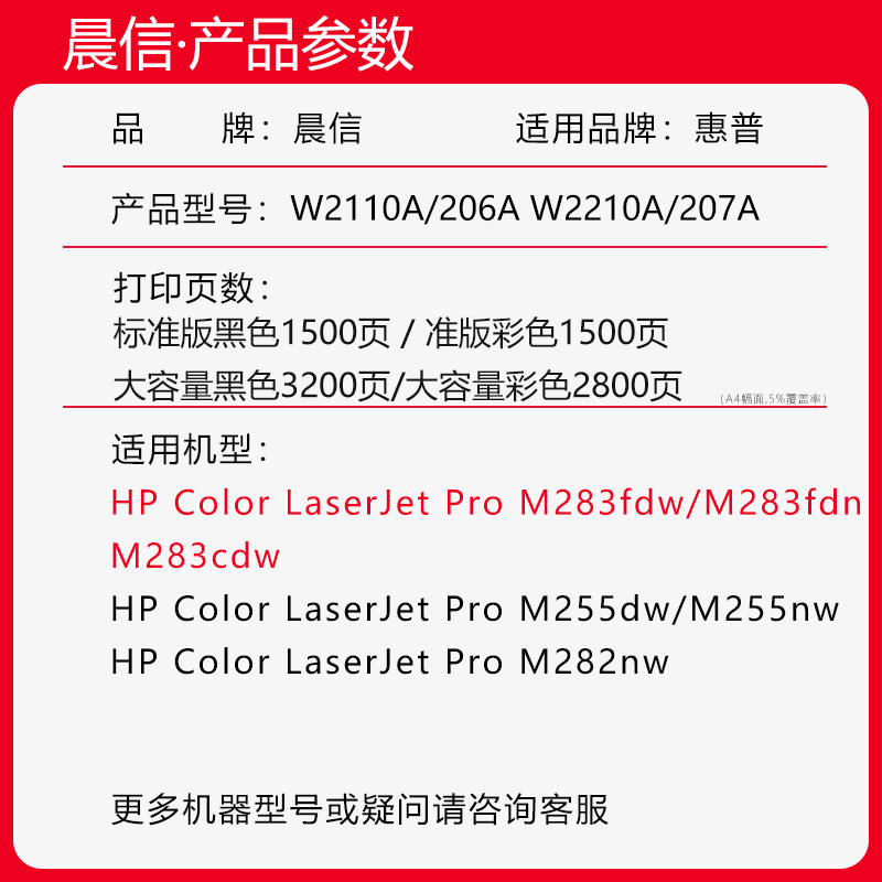 适用惠普M283fdw硒鼓M255dw M283fdn打印机墨盒M282nw M283dw激光彩色粉盒HP206A 207A碳粉W2110A W2210A墨粉