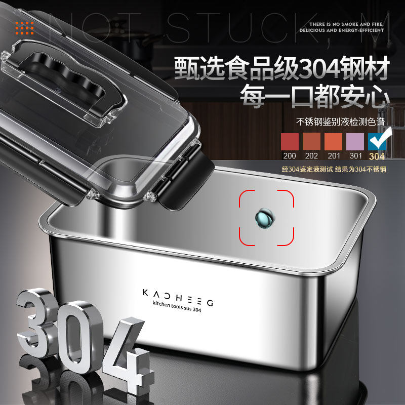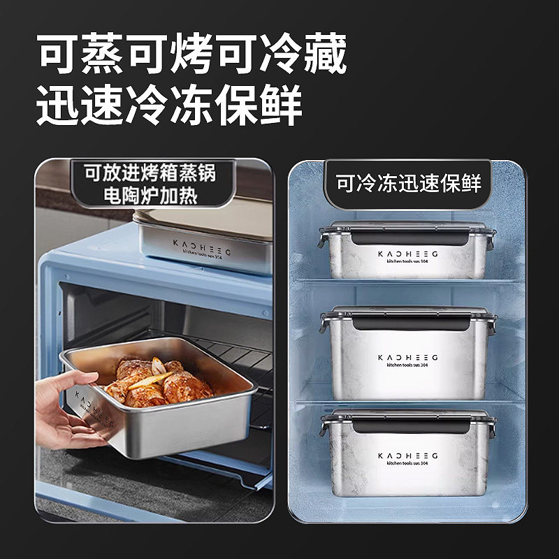 炊大皇不锈钢保鲜盒冰箱专用密封收纳盒水果上班族便当饭盒加热