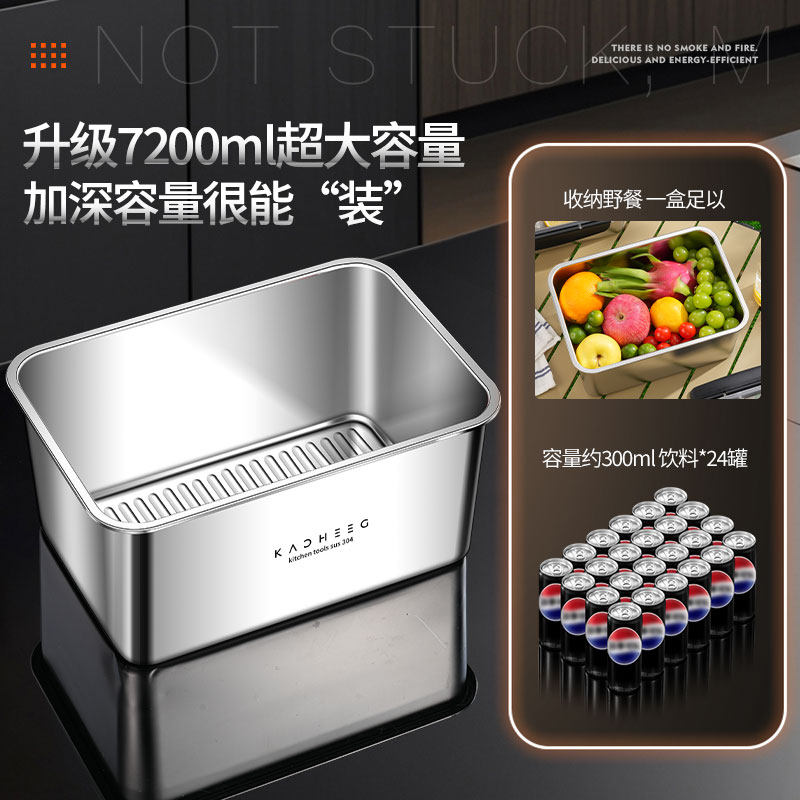 保鲜盒不锈钢加厚食品级方盘冰箱收纳盒带盖子烧烤凉菜盘烤鱼盘子