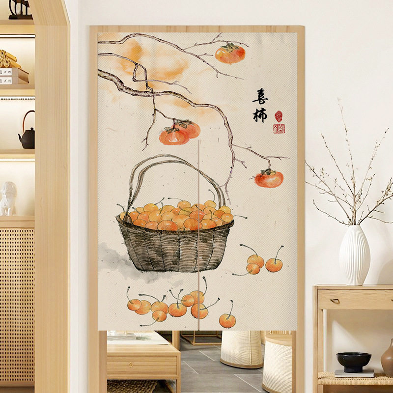 新中式如意防水防污门帘卧室玄关过道半截遮挡布帘客厅隔断帘福字