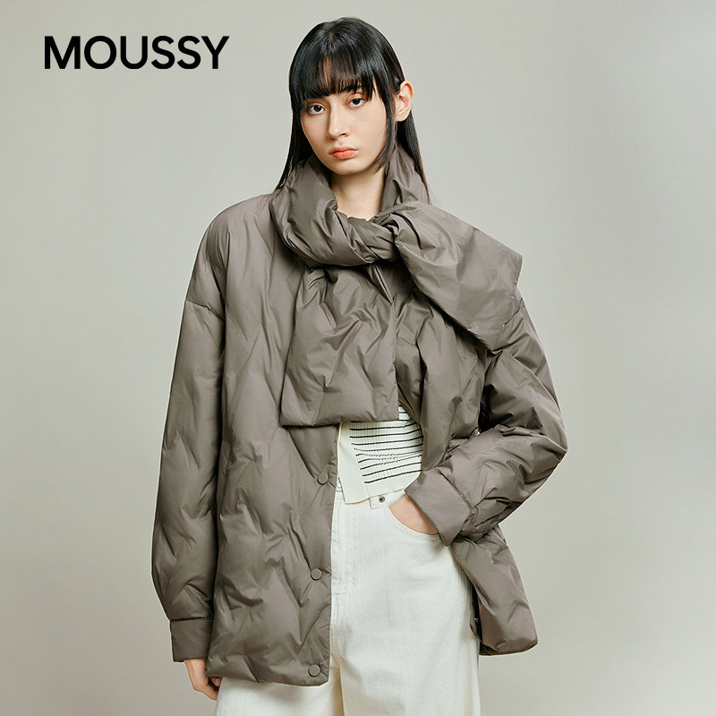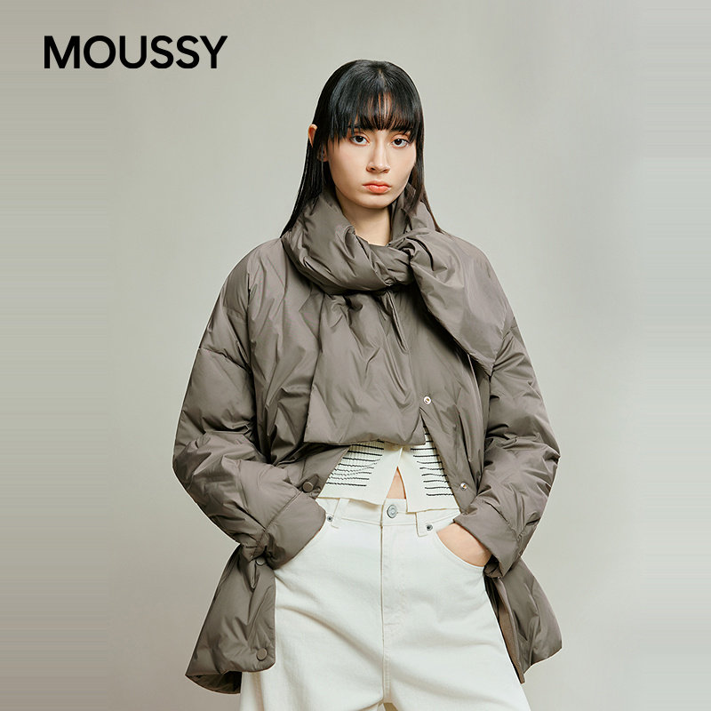 moussy 秋季围巾领结廓形90羽绒夹克外套女028IAA30-1045
