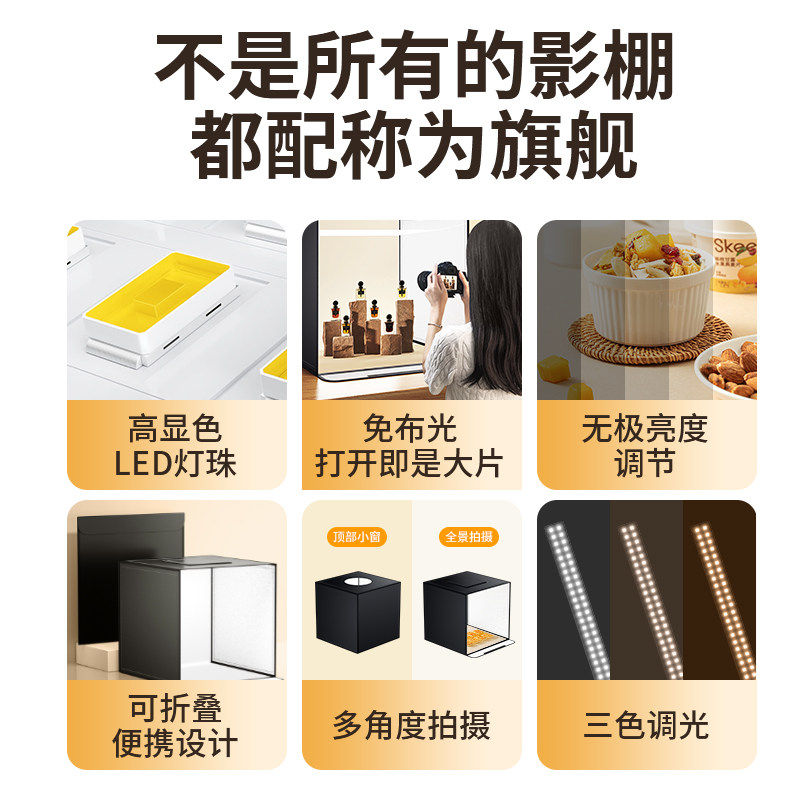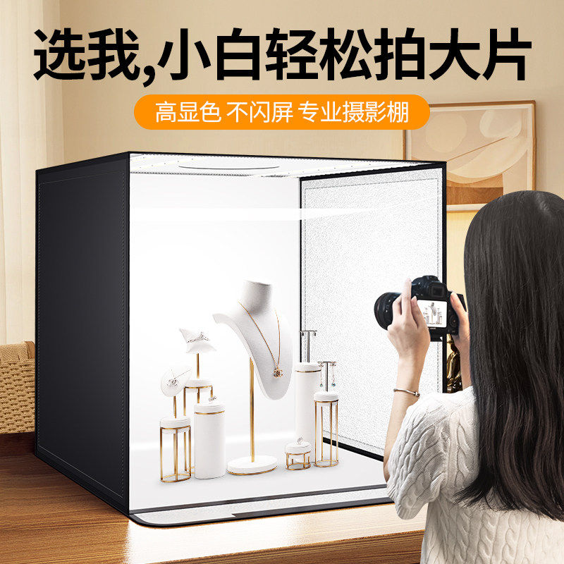 电商拍照摄影棚小型led产品灯箱静物拍摄台道具专业白底无影图背景板珠宝补光灯简易折叠便携式柔光箱灯光