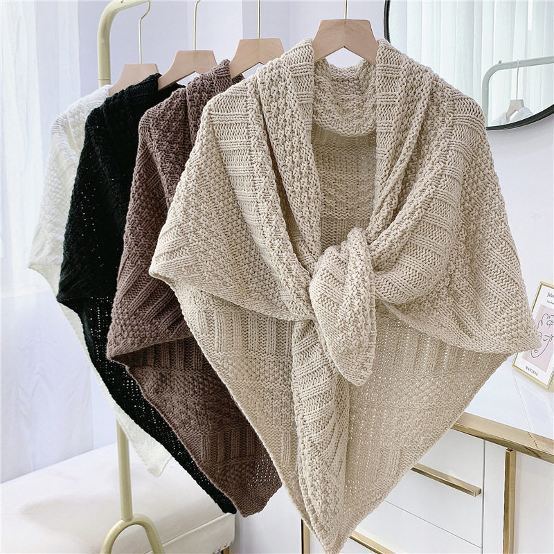 秋冬季三角巾针织毛线披肩式女外搭围巾围脖百搭包头披肩斗篷