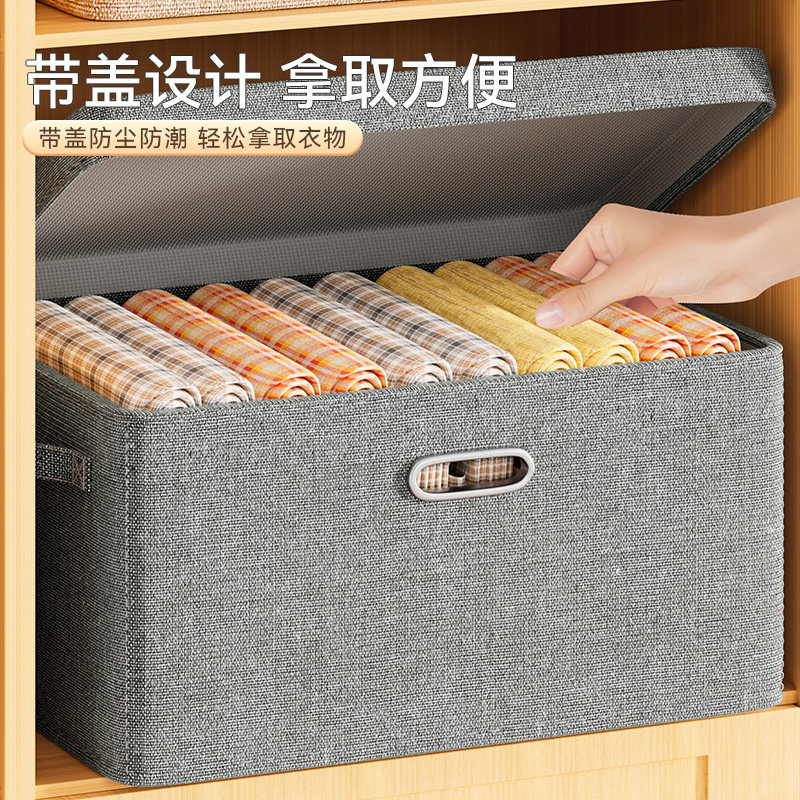 衣服收纳箱家用衣柜分层整理盒放衣物裤子布艺棉麻折叠储物筐神器