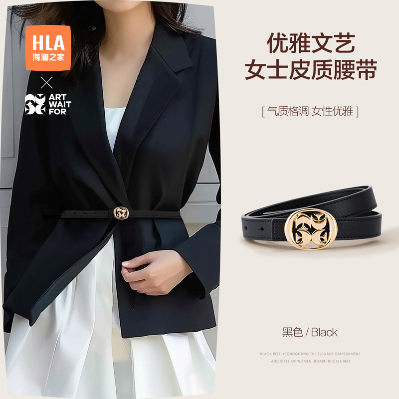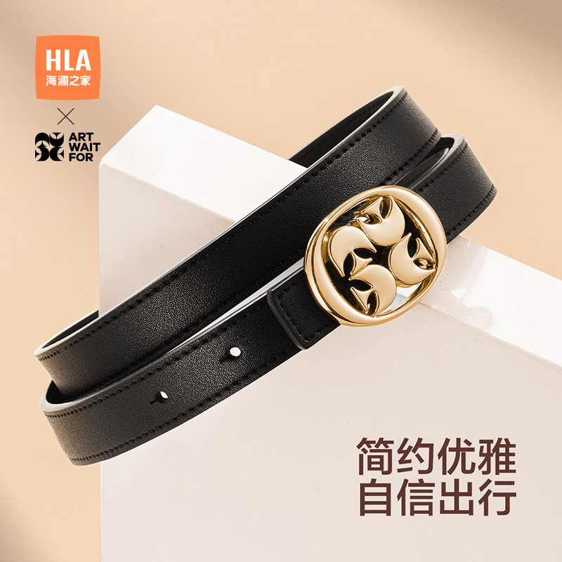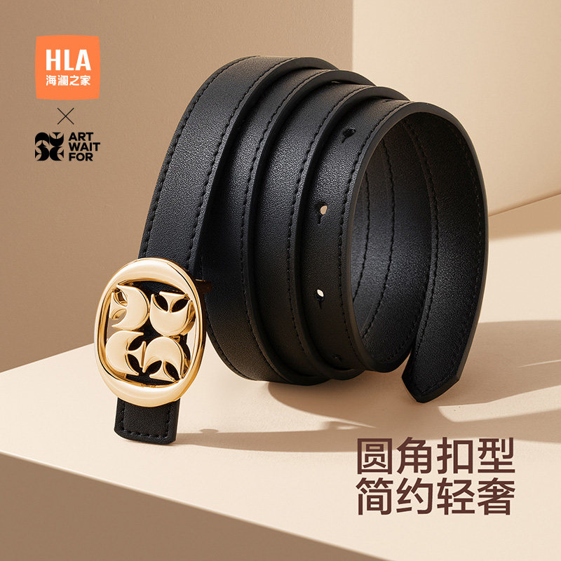 海澜之家皮带女士真牛皮腰带板扣2026新款商务休闲配饰平滑扣裤带