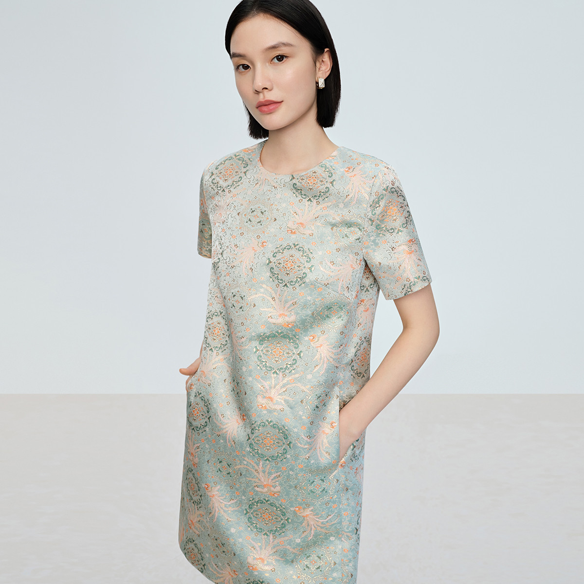 【宝相纹双凤繁花裙】naivee纳薇26春夏新款箱型连衣裙法式中国风