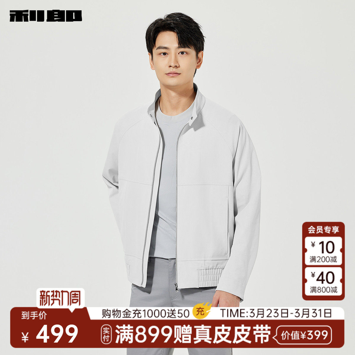 【含亚麻/薄款】利郎官方正品夹克男士春季新款休闲男装短款外套