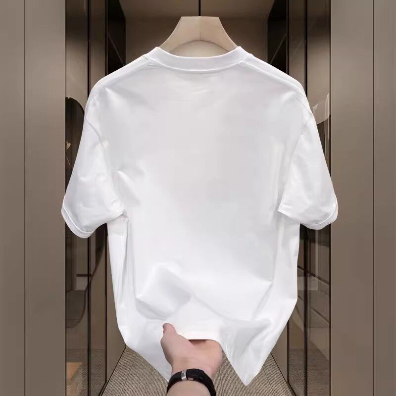 新疆长绒纯棉短袖t恤男士纯色宽松全棉半袖圆领汗衫简约百搭体恤