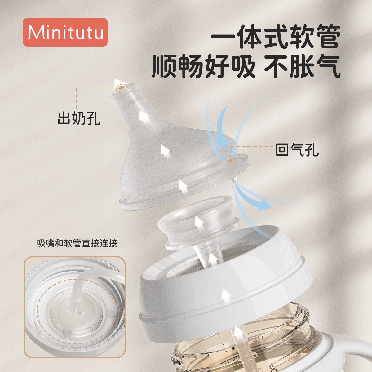 MInitutu新生儿奶瓶婴儿PPSU防胀气宝宝初生防呛奶嘴学饮杯重力球