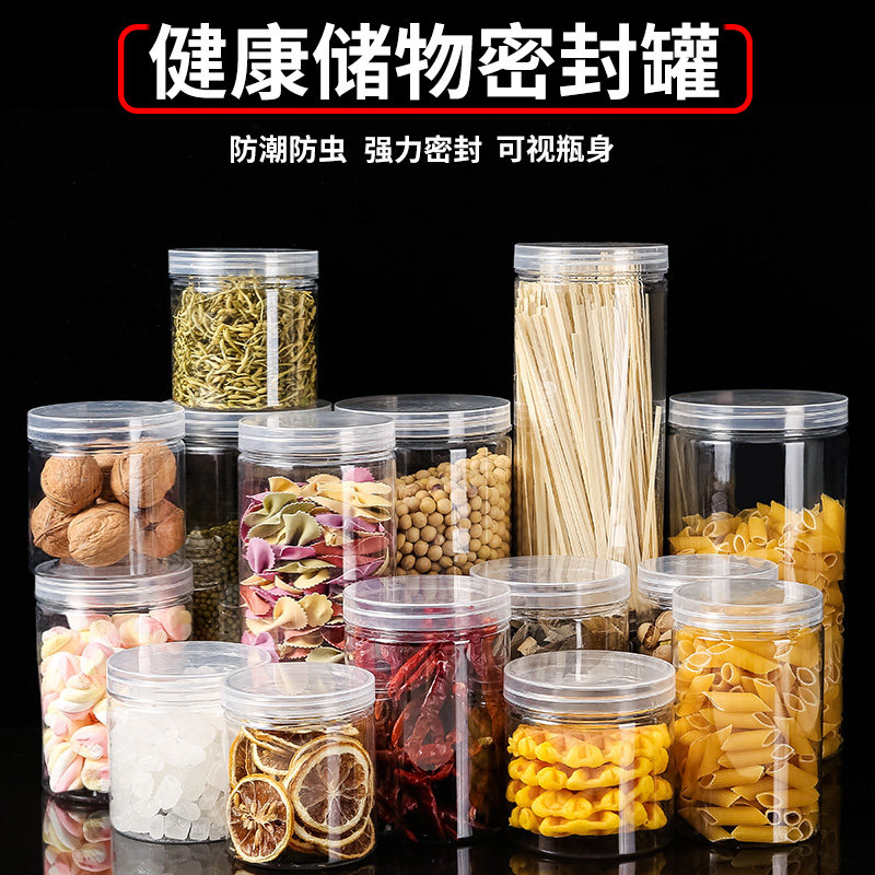 食品级塑料空瓶子透明pet密封罐子五谷杂粮收纳盒广口糖果储物罐