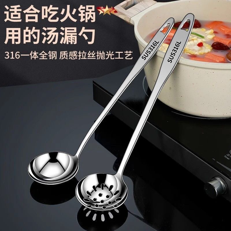 304食品级不锈钢汤勺家用长柄盛汤勺子火锅漏勺隔油勺套装盛粥勺