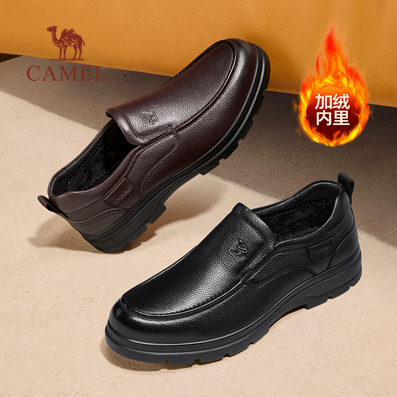骆驼男鞋2026春季真皮商务休闲男士皮鞋加绒保暖棉鞋中年爸爸鞋子
