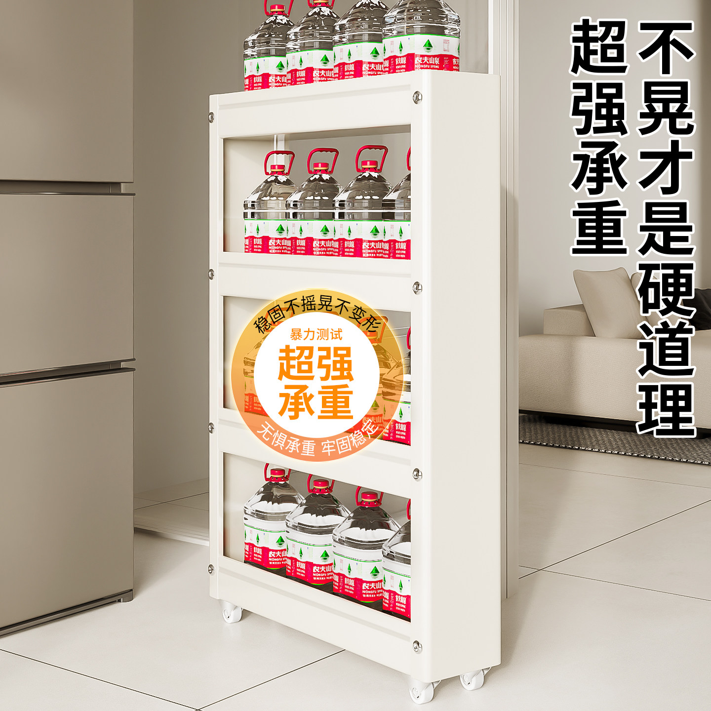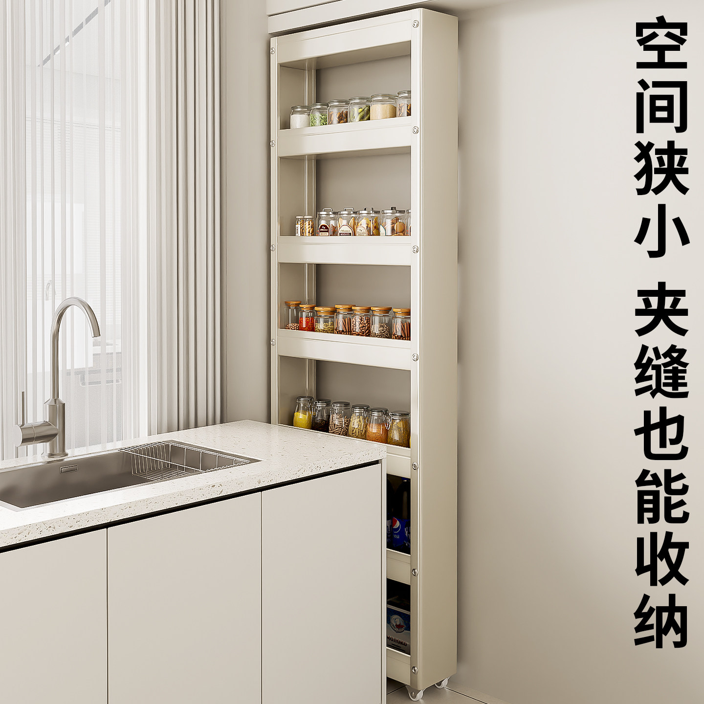 新款门后极窄缝隙收纳柜厨房夹缝置物架冰箱侧边卫生间抽拉小推车