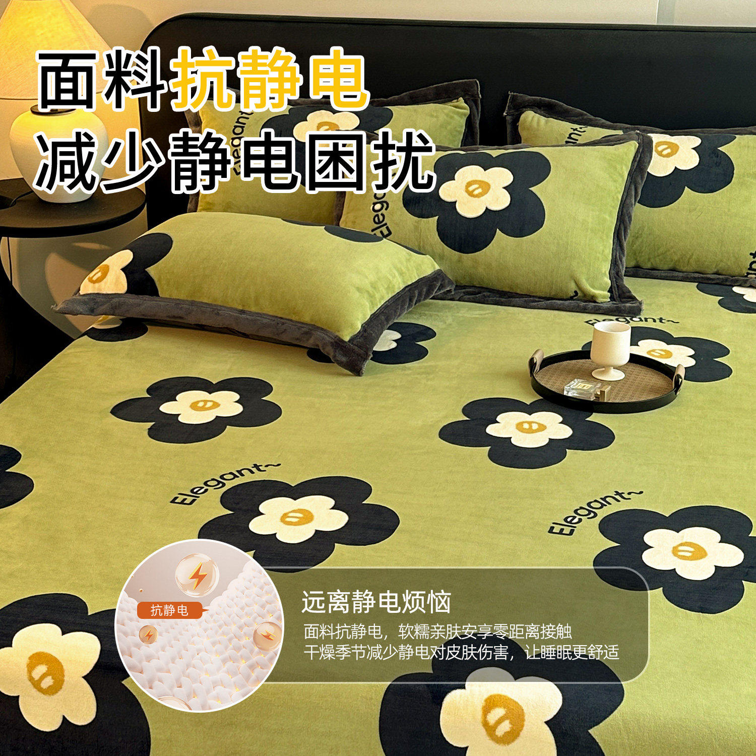 高克重牛奶绒加厚床单出租屋珊瑚绒秋冬保暖床褥防尘床笠学生宿舍