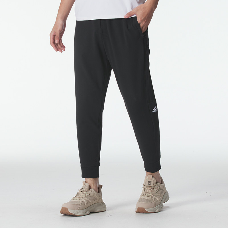 阿迪达斯黑色针织长裤男夏新款运动裤宽松束脚裤官方正品休闲裤子