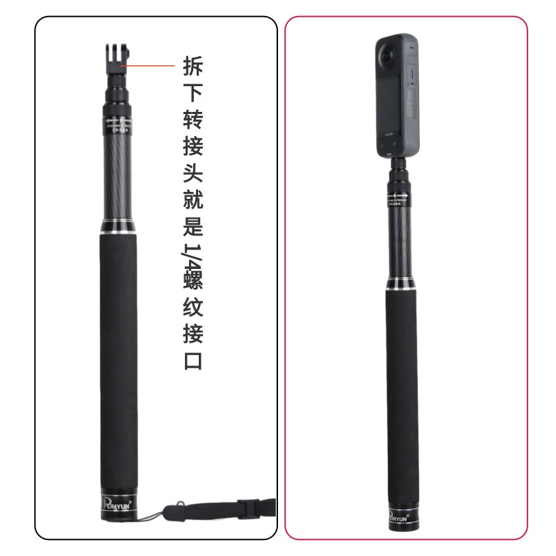 1.5米GoPro MAX滑雪潜水Insta360大疆osmo 360隐形杆碳纤维自拍杆