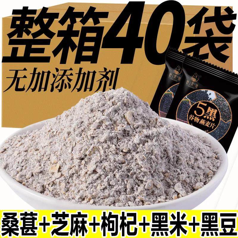 五黑燕麦片营养早餐粗粮冲泡芝麻糊枸杞黑米桑葚黑豆休闲零食品