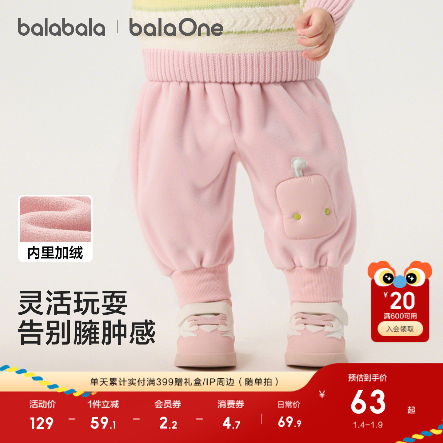 巴拉巴拉童装宝宝加绒长裤男童女童2025冬装新款儿童保暖加厚裤子