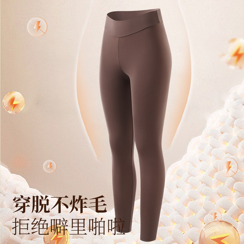 德绒无痕保暖秋裤女高腰内穿加厚加绒一体羊羔绒纯色大码打底裤冬