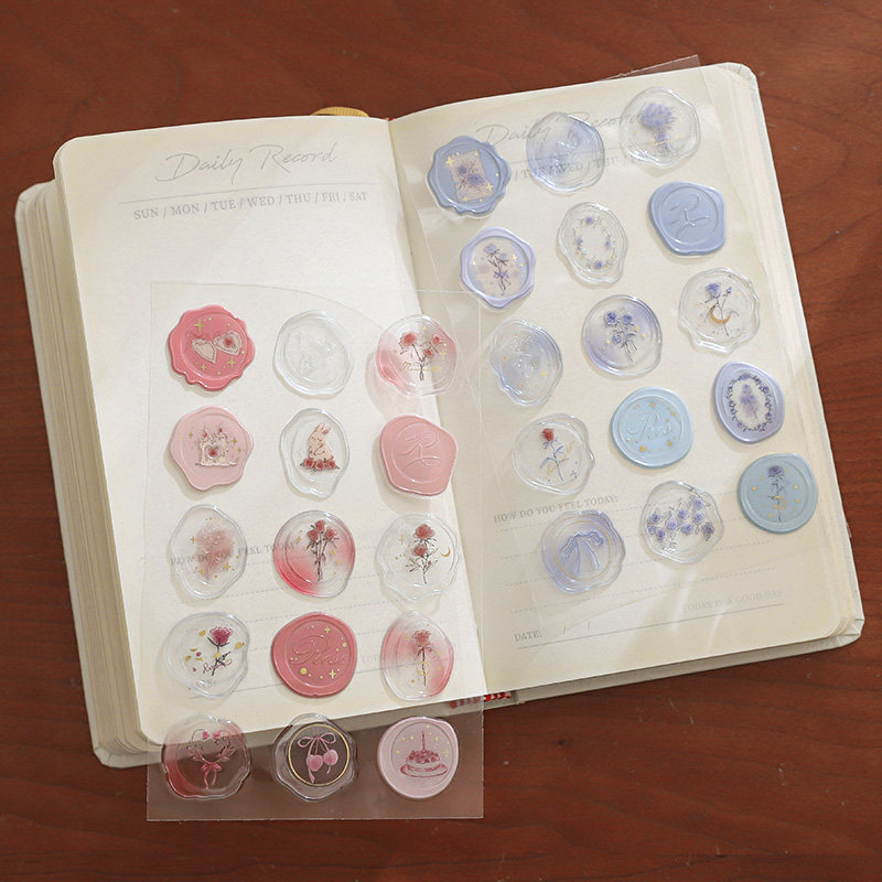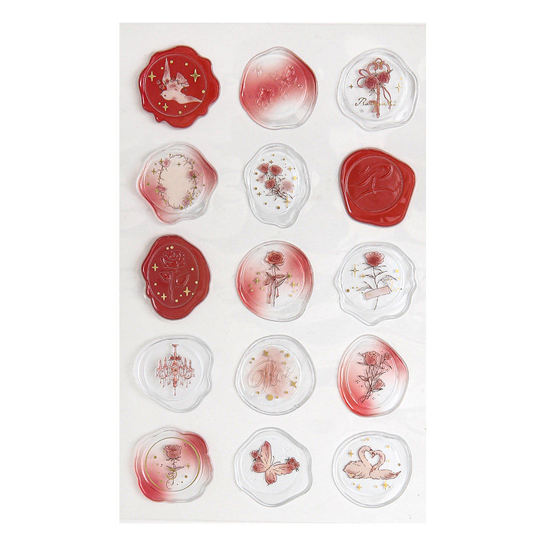 小日子不翻篇 玫瑰系列火漆烫金滴胶贴纸文艺立体浪漫花卉diy贴画