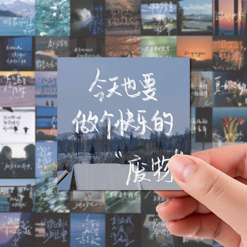 63张贴纸手写diy励志文字手账励志文字贴纸高颜值个性小众粘贴画