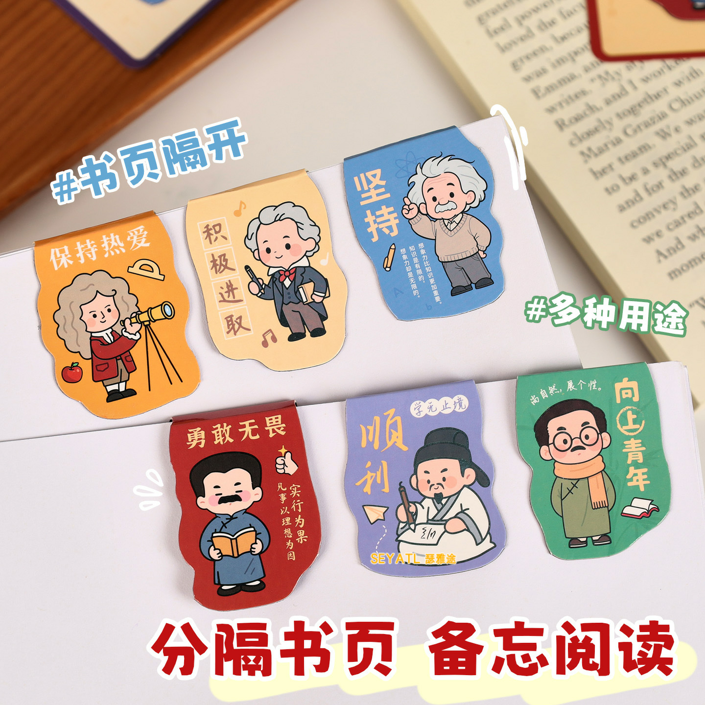 SEYATL新款卡通名人磁性书签学生高颜值奖励礼品励志文字折叠书页