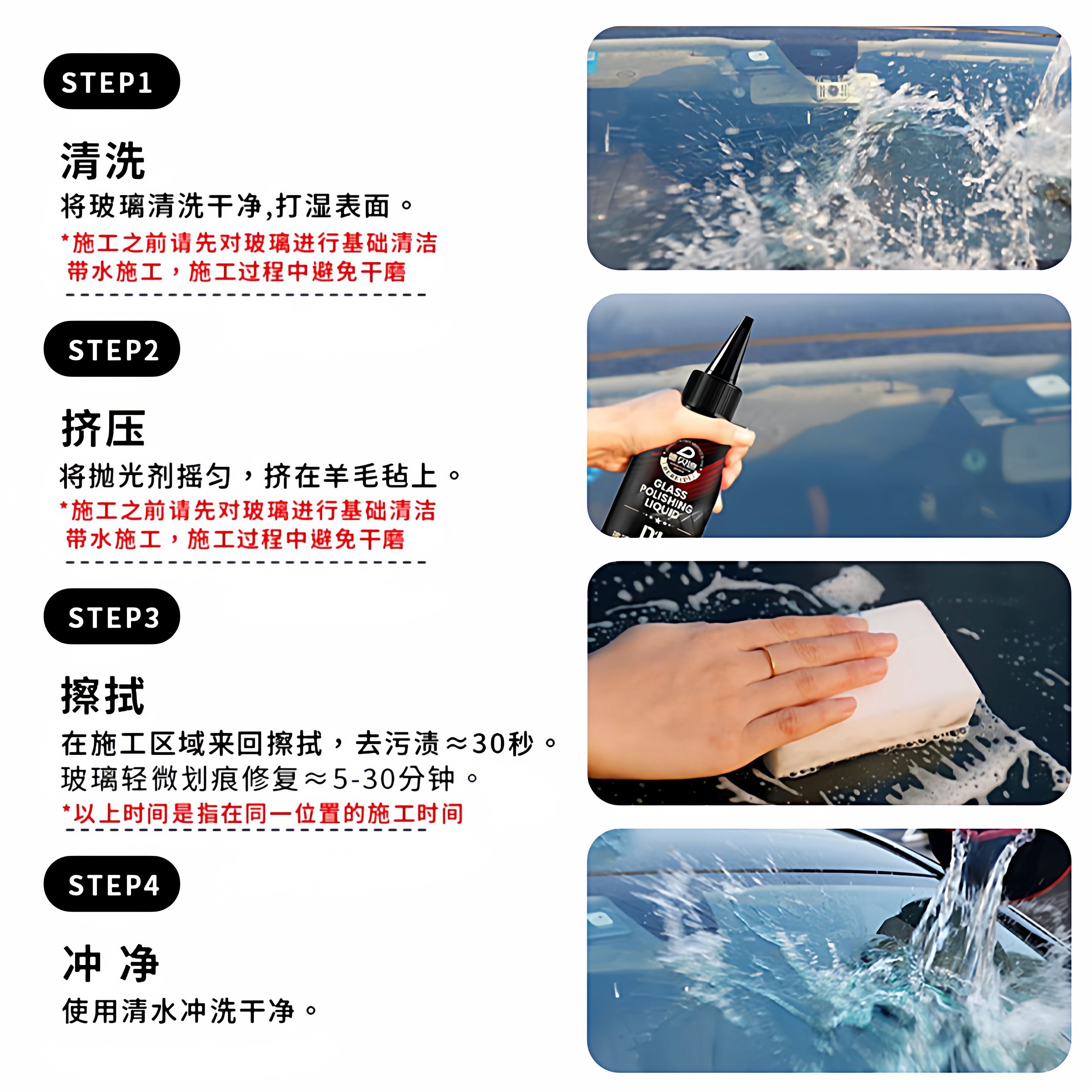 玻璃抛光精粹液氧化铈汽车油膜去除剂去污去油镀膜划痕清洁液