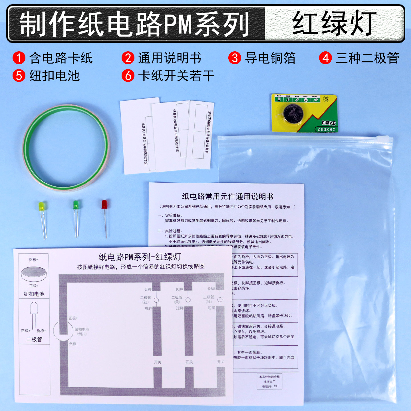 纸电路制作材料包自制红绿灯电路模型STEAM教育幼儿园小学生电学科学实验DIY手工小制作导线纸背胶铜箔二极管