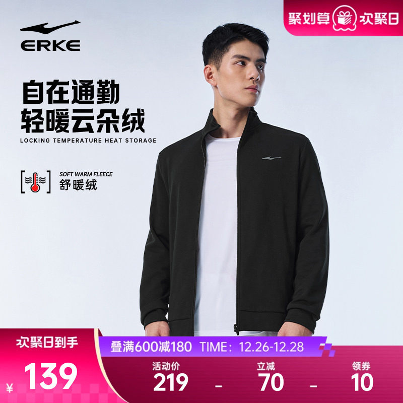 鸿星尔克加绒外套男款冬季新款男士衣服加厚卫衣运动夹克爸爸男装