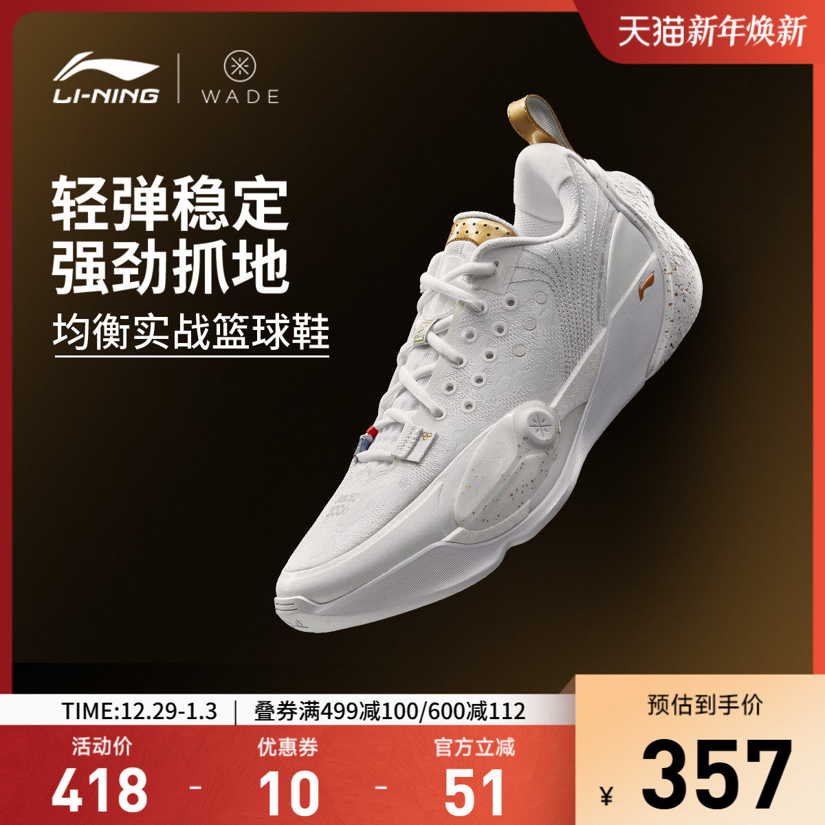 李宁篮球鞋韦德全城13低帮男鞋全城2025新款透气清凉男士运动鞋