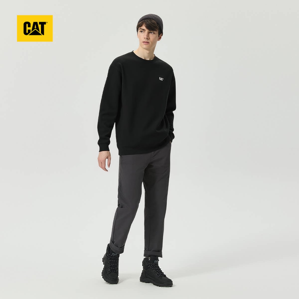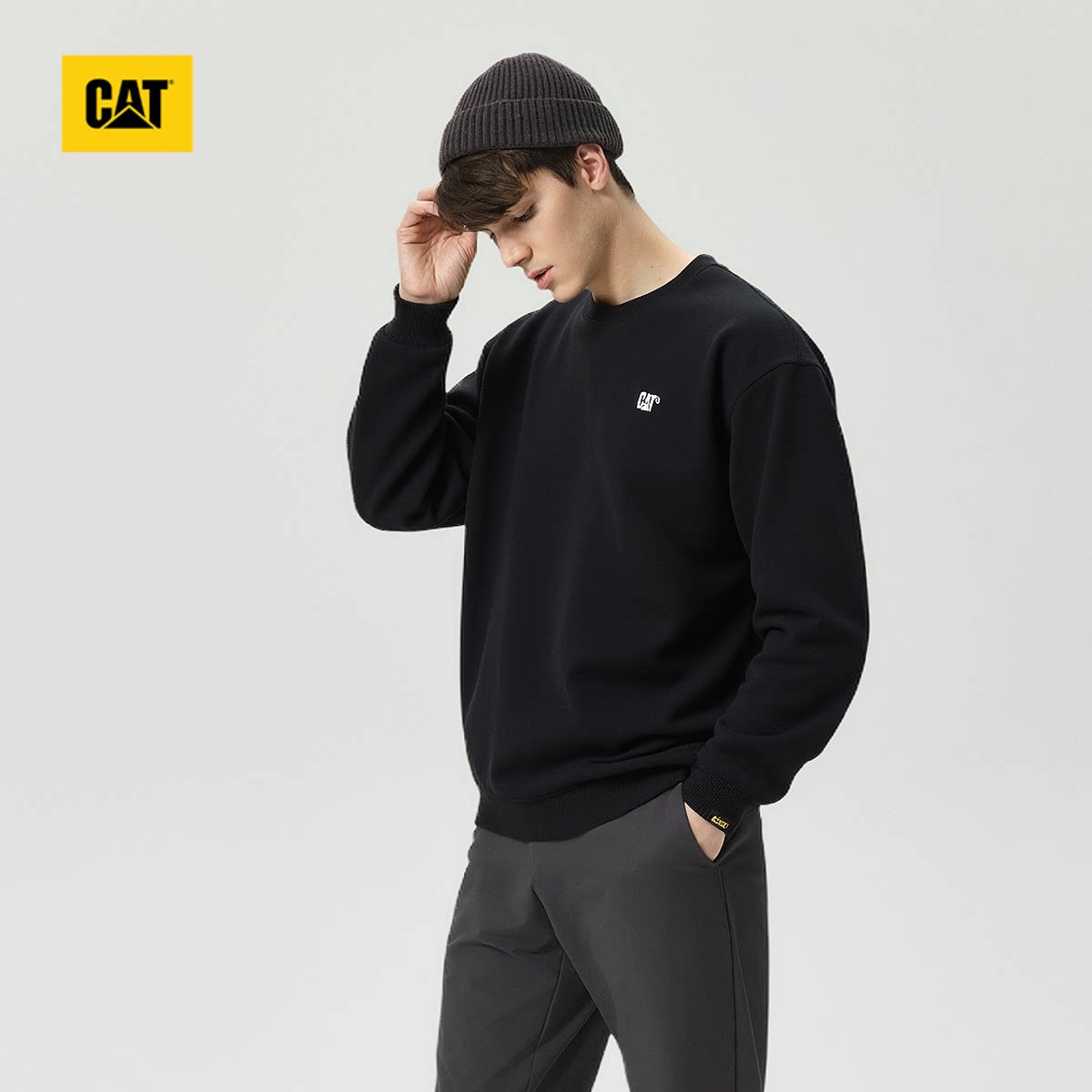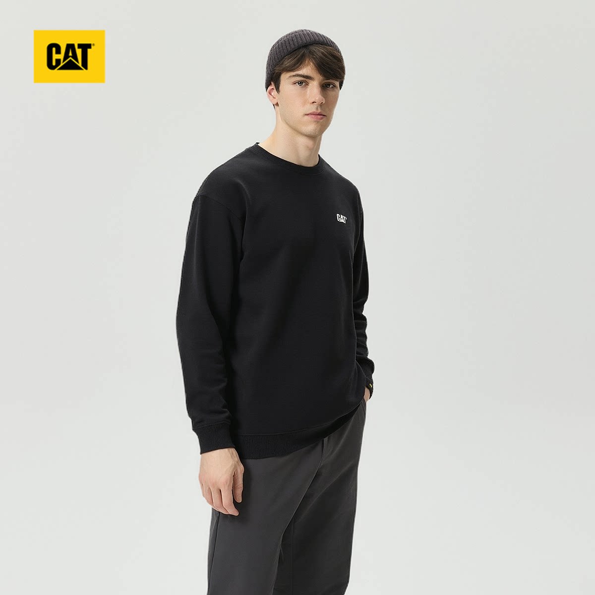 CAT卡特春季新品男士户外复古百搭工装风套头刺绣小LOGO圆领卫衣