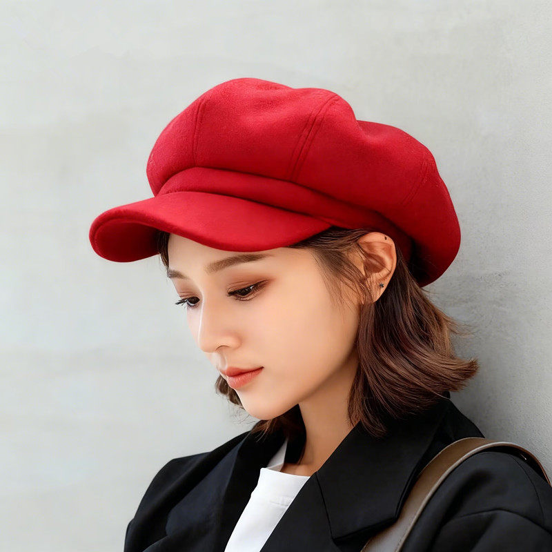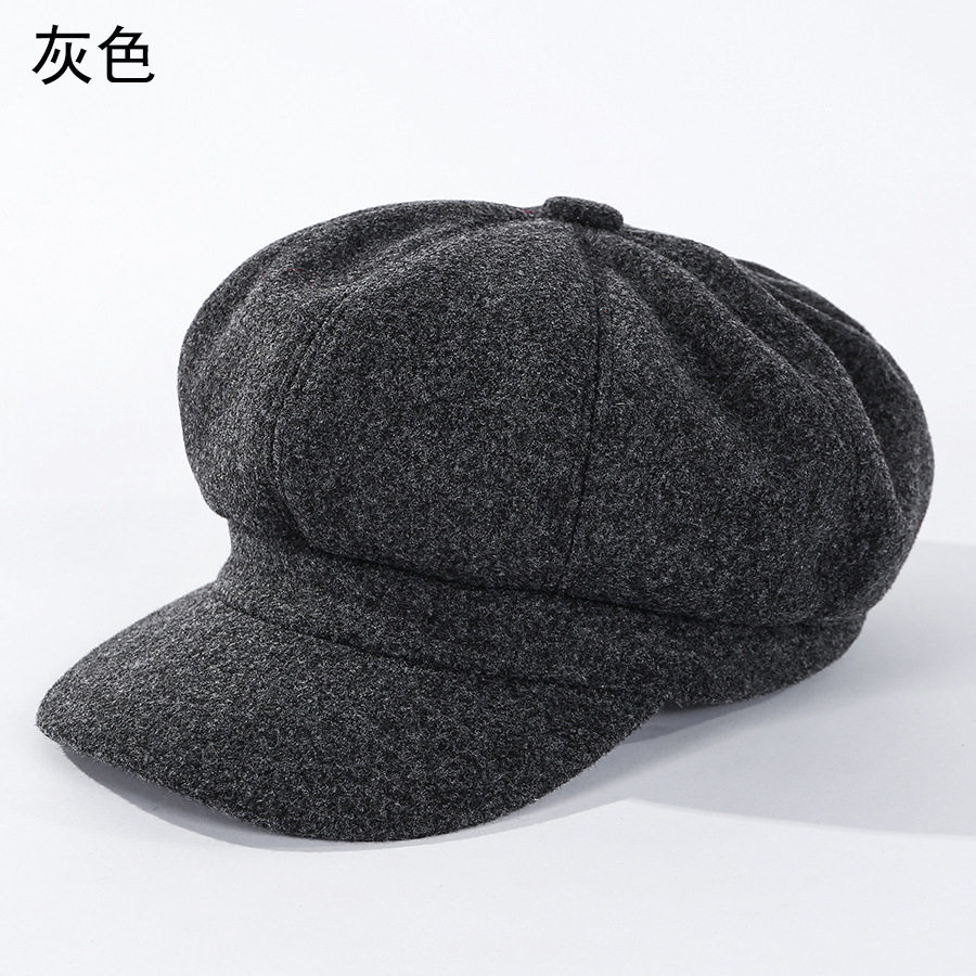 秋冬季网红毛呢帽子女新款冬天画家帽韩版百搭八角帽贝雷帽可折叠