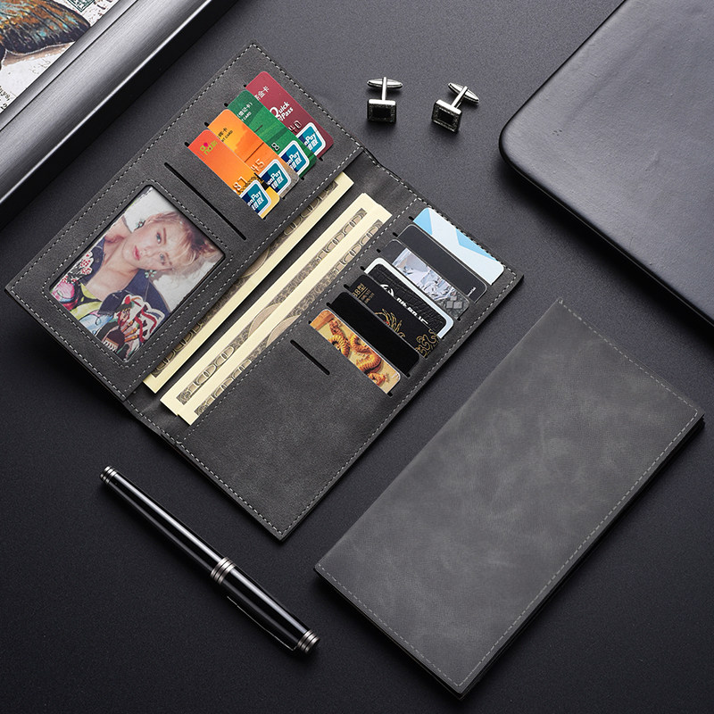 翻毛皮钱包男士长款简约时尚钱夹卡包软皮夹零钱包证件轻薄小巧