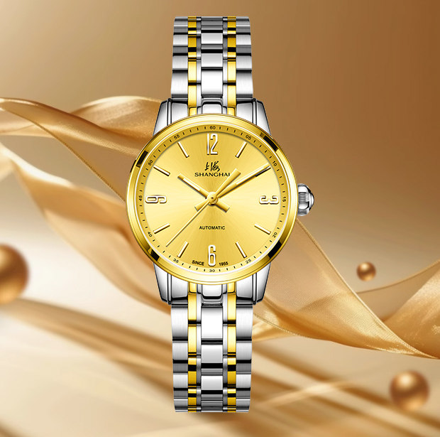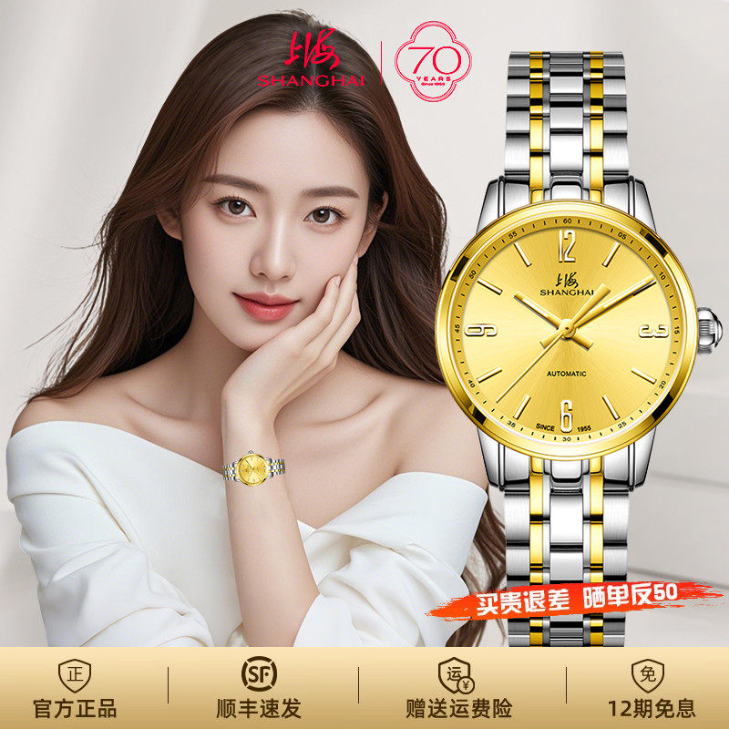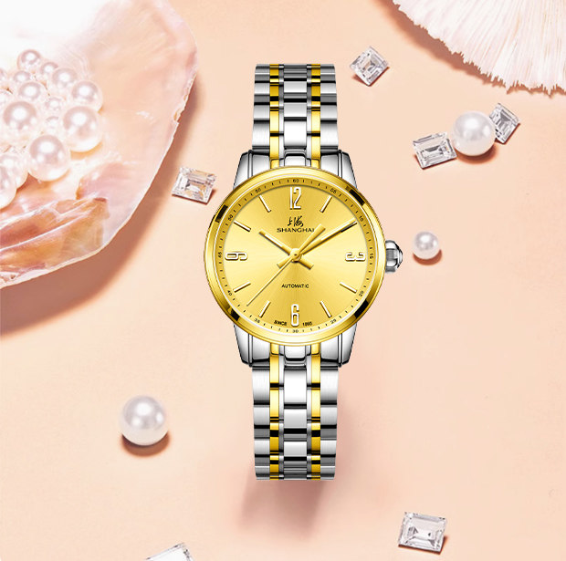 【推荐】上海牌手表女蓝宝石镜面夜光防水透底自动机械女表3009