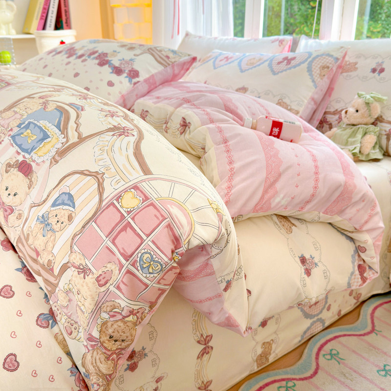 TeenieWeenie全棉水洗棉四件套100纯棉被套床单床笠款床上三件套4