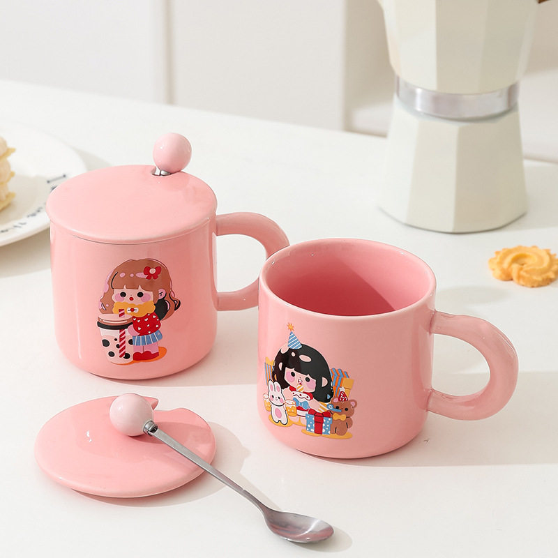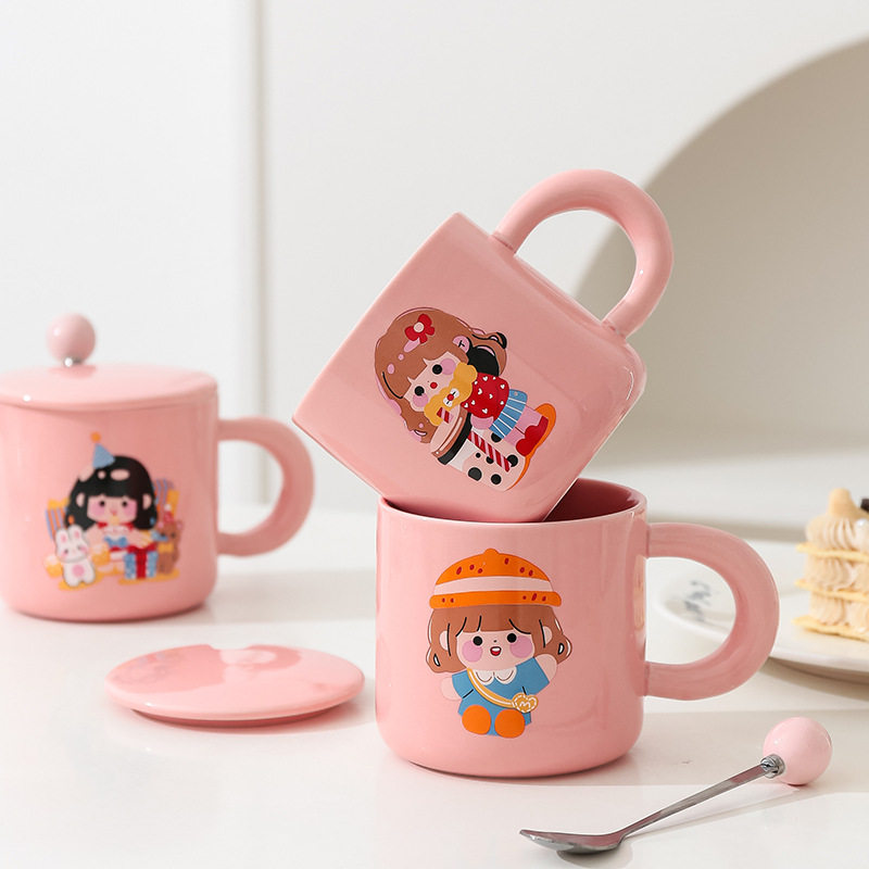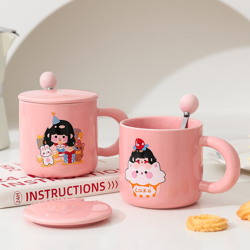 陶瓷ins高颜值少女心可爱马克杯女生家用早餐杯女学生宿舍杯带盖