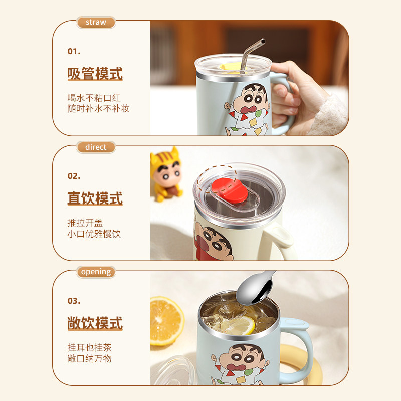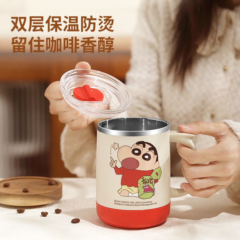 保温马克杯带盖带勺杯子家用喝水不锈钢冲泡杯咖啡杯茶杯女高颜值