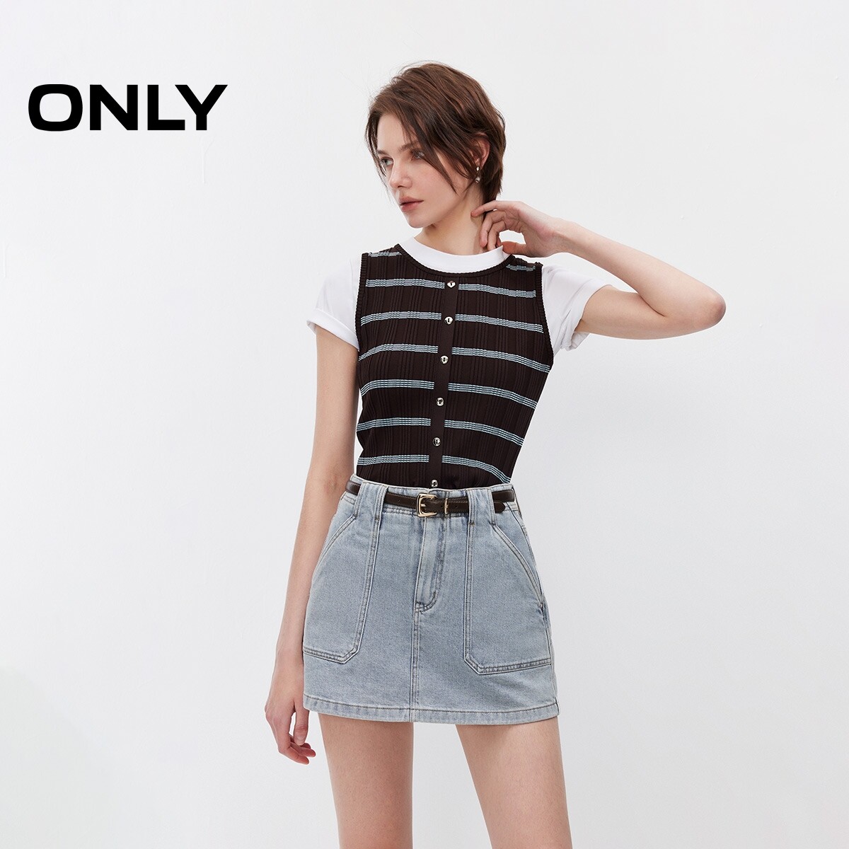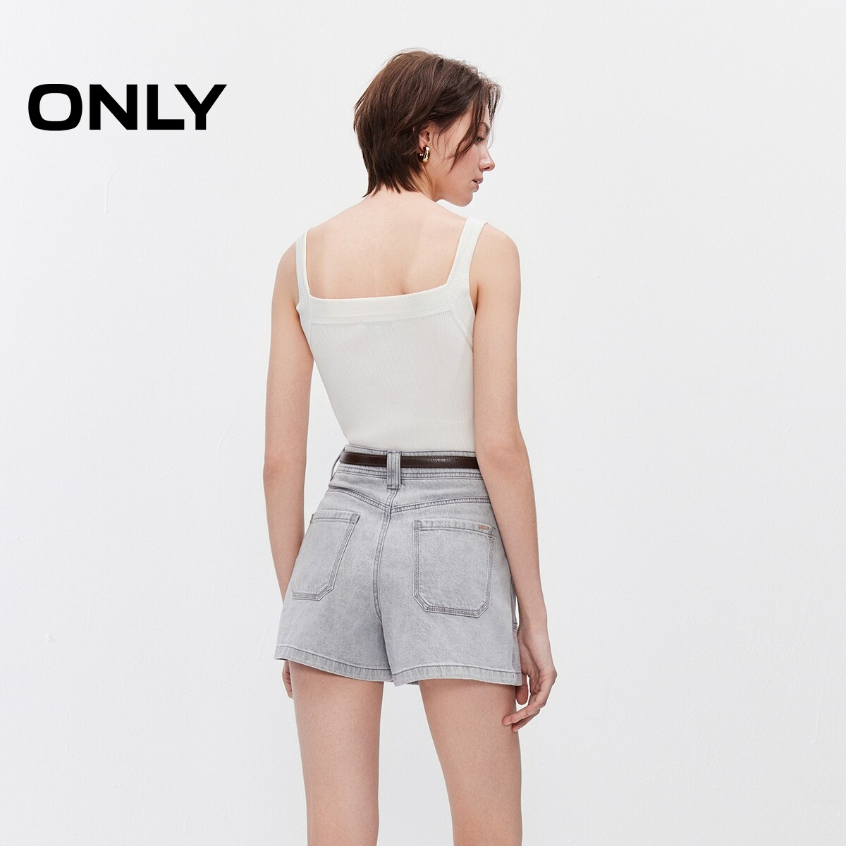 ONLY2026春季新款松弛A字宽松对称明线口袋高腰裤裙短裤牛仔裤女
