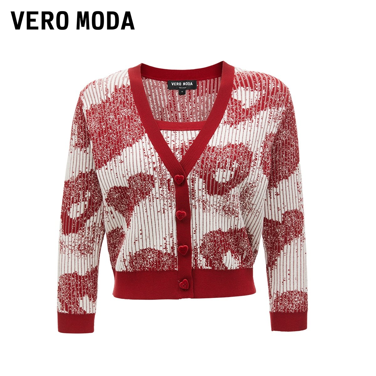 坑条针织面料,显瘦有质感;心形装饰