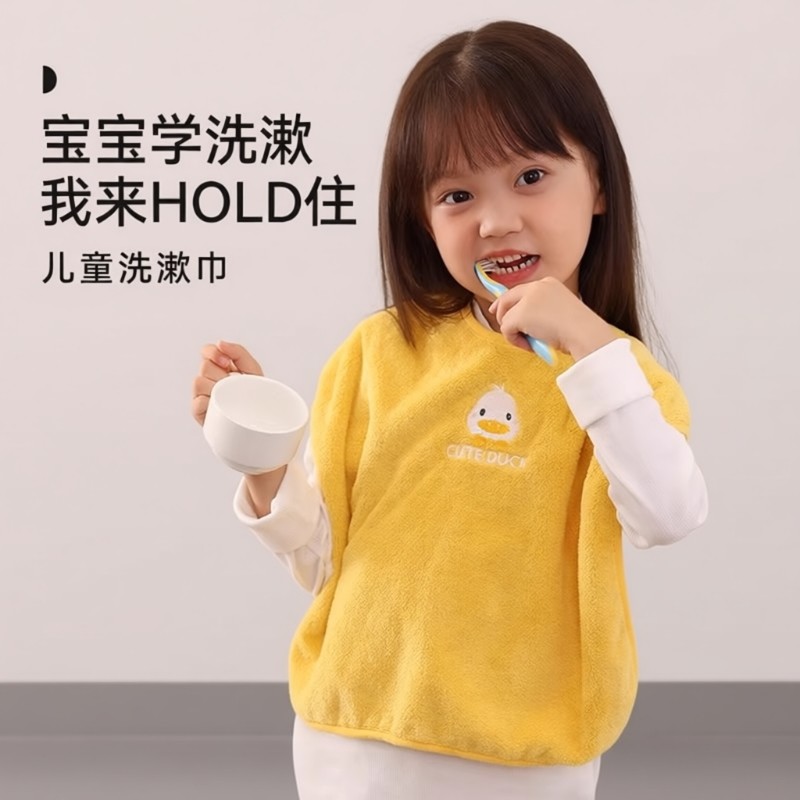 儿童洗漱巾洗脸围嘴刷牙防水围兜多功能毛巾宝宝不湿衣小孩漱口巾