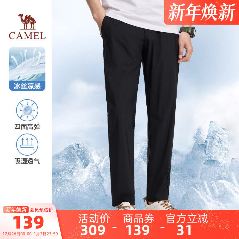 骆驼男装凉感冰丝裤弹力透气宽松抗皱休闲裤青少年九分裤薄款夏季