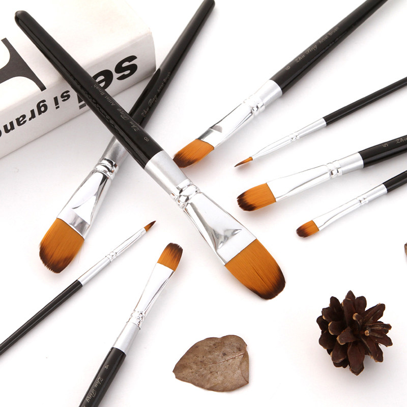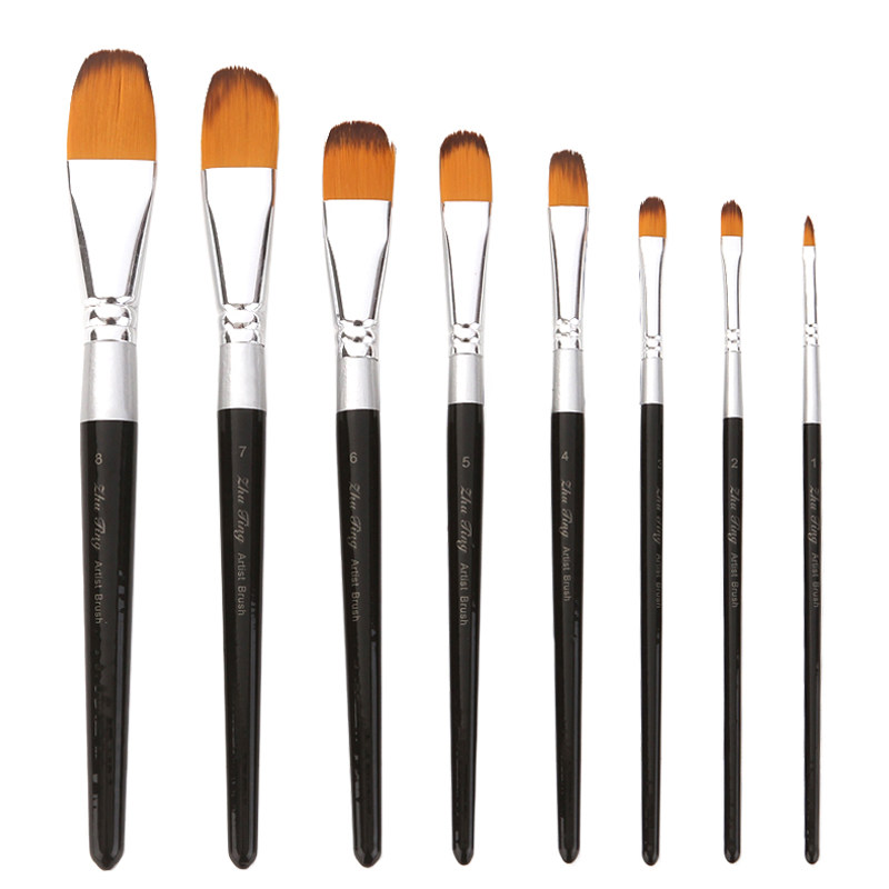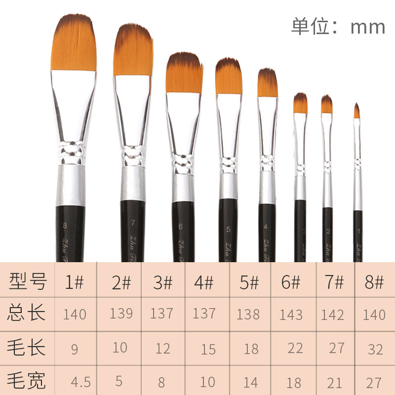 红杆尼龙油画笔水彩笔扁平头尼龙毛刷1-12号多种型号学生美术色彩笔刷