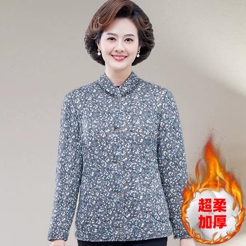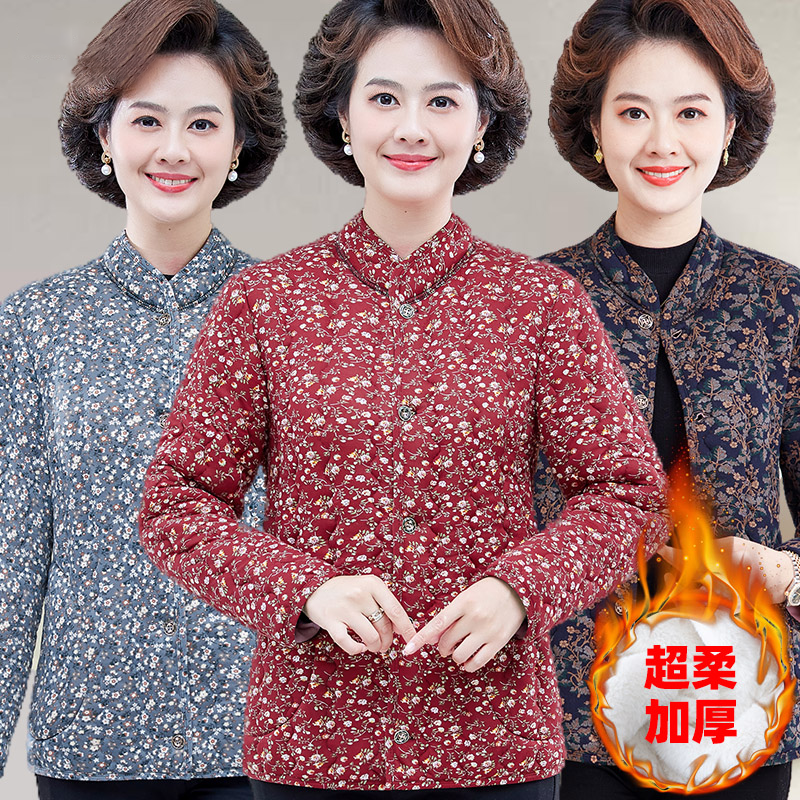 妈妈冬季加绒加厚碎花小棉袄中老年女款内胆棉衣奶奶保暖棉服大气