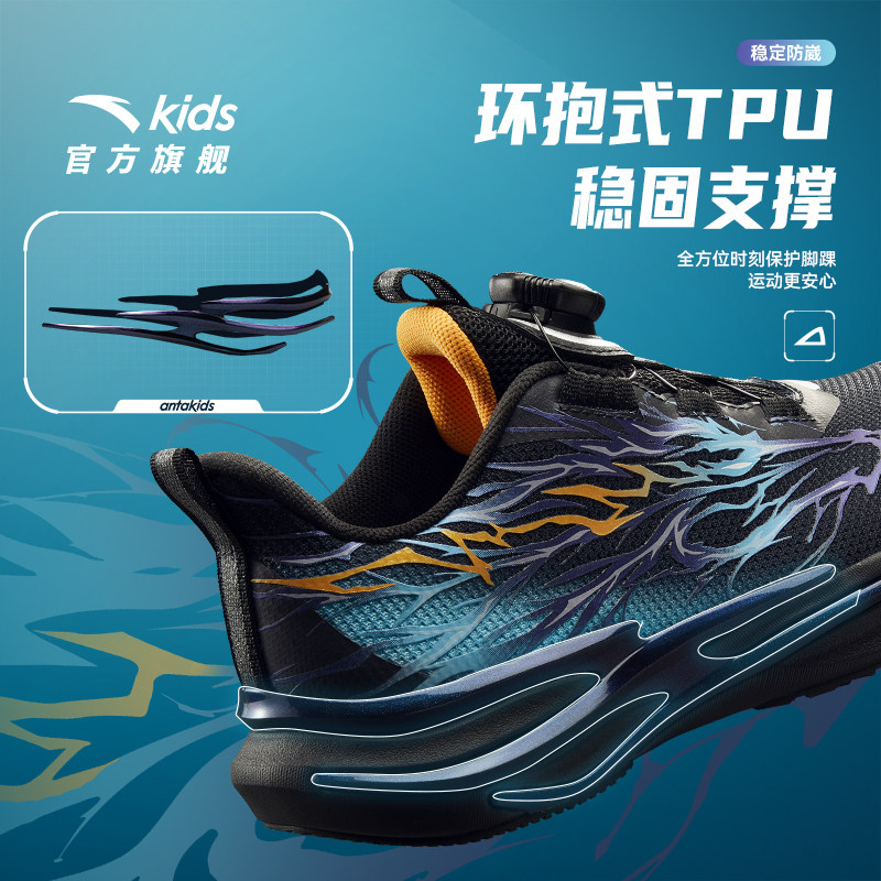 安踏男童鞋子儿童运动鞋赤焰2025年秋冬季新款皮面保暖防滑防臭鞋