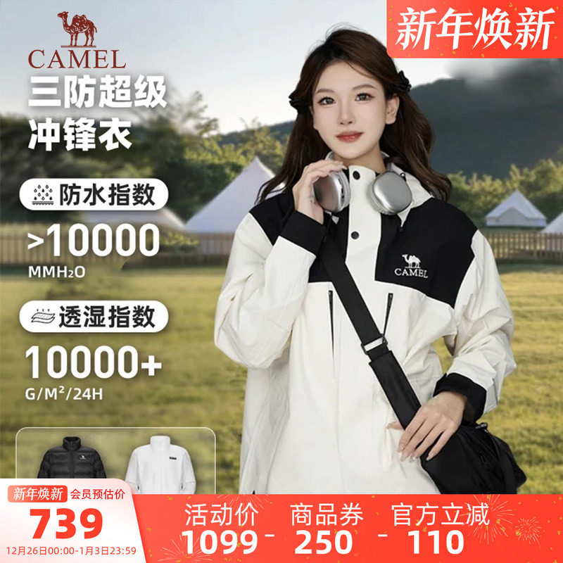 【五合一】骆驼女装羽绒服冲锋衣外套冬户外防水防风羽绒内胆外套