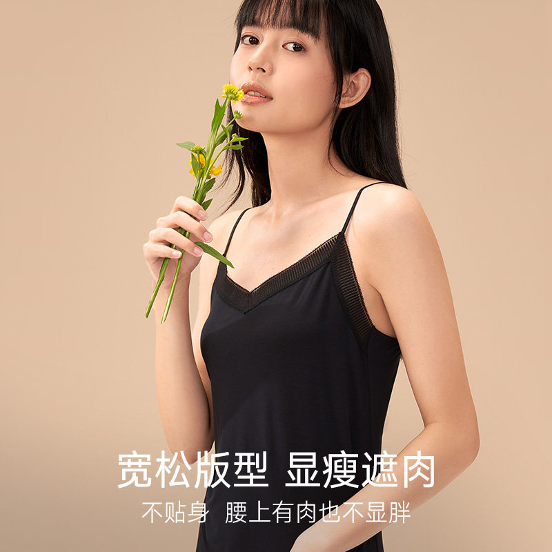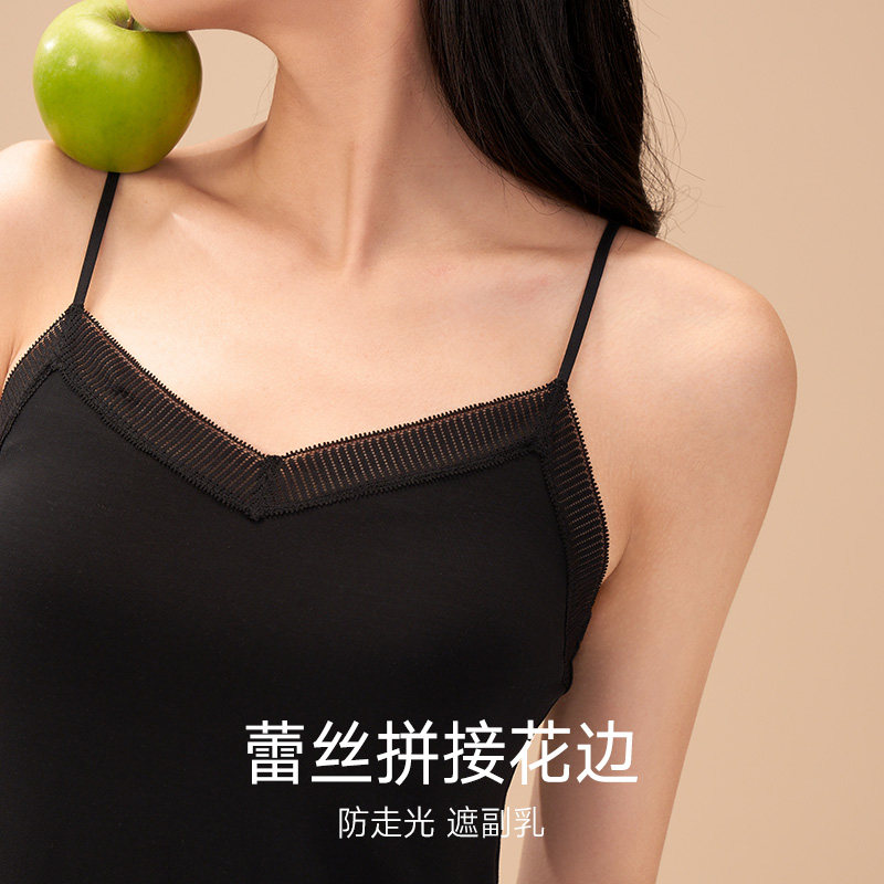 曼妮芬棉质生活无痕透气蕾丝花边莫代尔50支棉吊带背心女