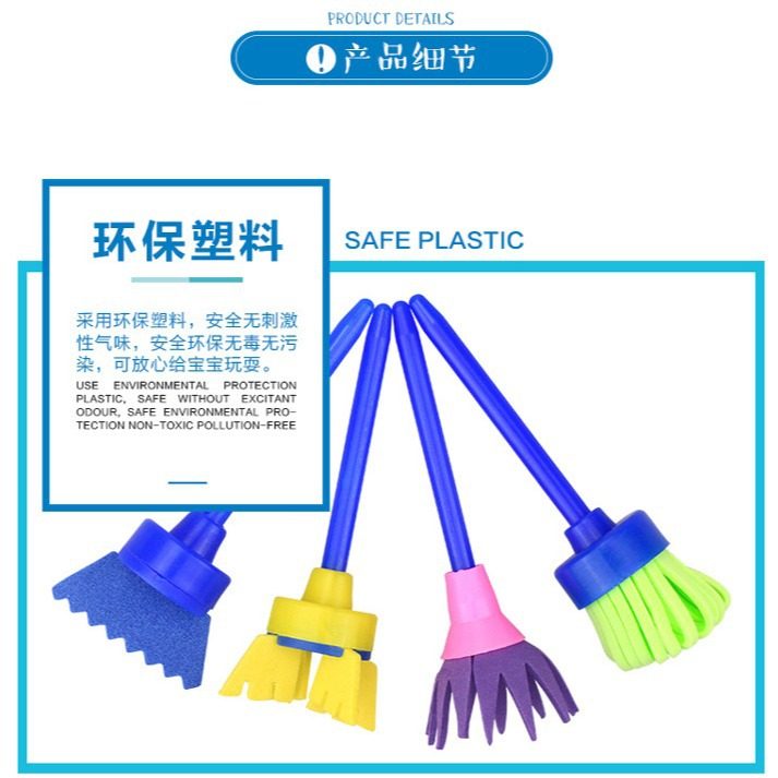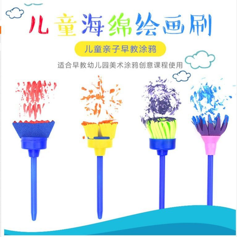 eva扫把头4件套花形旋转绘画海绵刷 幼儿园绘画涂鸦DIY工具
