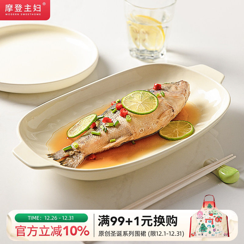 摩登主妇双耳鱼盘家用2025新款蒸鱼盘子高级感餐具椭圆形鱼碟菜盘